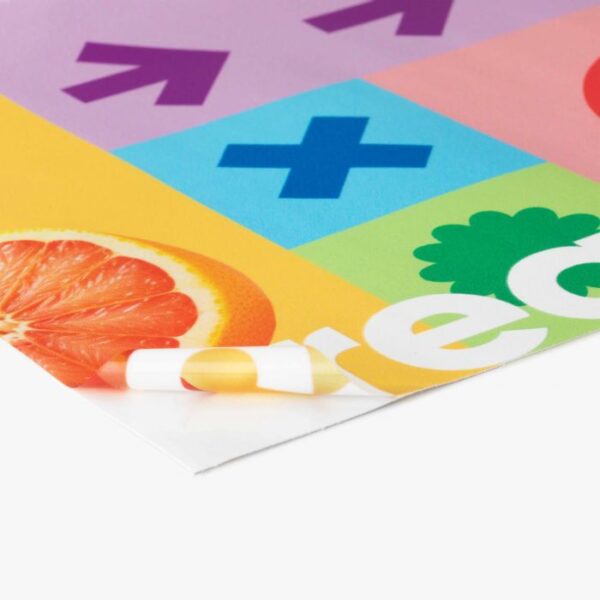 Het materiaal heeft een maximale printbreedte van 148 cm uit één stuk en is verkrijgbaar in drie uitvoeringen. Je kunt het zonder laminaat bestellen of met een mat of glazend laminaat. Het laminaat zorgt ervoor dat de folie beter bestand is tegen hoge temperaturen en vocht.
