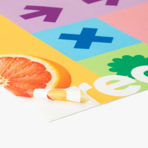 Het materiaal heeft een maximale printbreedte van 148 cm uit één stuk en is verkrijgbaar in drie verschillende uitvoeringen. Je kunt het zonder laminaat bestellen of met een mat of glanzend laminaat. Het laminaat zorgt ervoor dat de folie beter bestand is tegen hoge temperaturen en vocht.