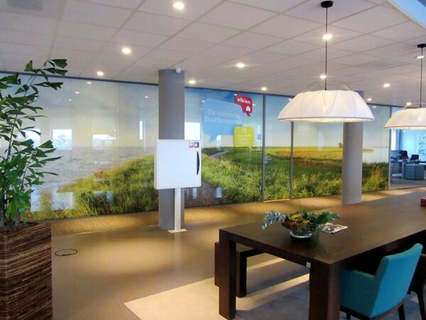 Het materiaal heeft een maximale printbreedte van 148 cm uit één stuk en is verkrijgbaar in drie verschillende uitvoeringen. Je kunt het zonder laminaat bestellen of met een mat of glanzend laminaat. Het laminaat zorgt ervoor dat de folie beter bestand is tegen hoge temperaturen en vocht.