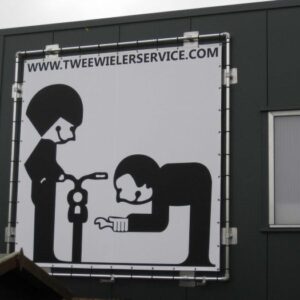 Je hebt bovendien keuze uit de verschillende afwerkingen: schoonsnijden, band en ringen, band en d-ringen, band en koord, tunnel, platte pees of klittenband. Bevestig het doek zoals dat bij jou past. Houd bij speciale afwerkingen, als tunnel, rekening met een veilige marge van 3 cm.