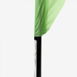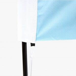 De gepersonaliseerde tunnel wordt gemaakt van hetzelfde materiaal als de vlag. Het ontwerp loopt door waardoor het een mooi geheel wordt. Houd wel rekening met een veilige marge van 3 cm. Plaats geen belangrijke beelden, logo’s of teksten binnen deze marge, omdat deze verloren kunnen gaan bij het afwerken of snijden.