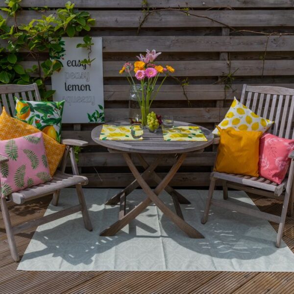 ProPES Outdoor is waterafstotend, waardoor vuil water niet blijft plakken en het buitenkleed gemakkelijk schoon te maken is. Daarnaast is ProPES Outdoor ook nog eens duurzaam, want het is 100% recyclebaar. Het lichtgewicht polyester doek is opvouwbaar, dus het kan compact verstuurd worden. Door het lichte gewicht neem je het buitenkleed ook gemakkelijk mee, op de fiets of in je picknickmand.