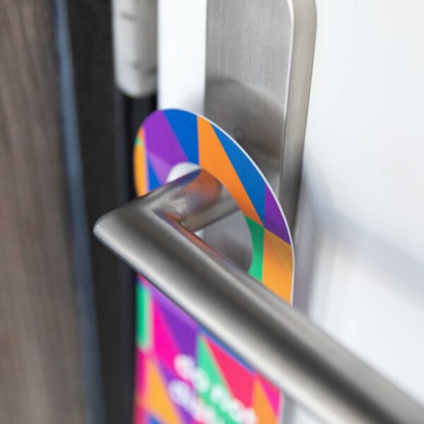De deurhanger is een opvallend communicatiemiddel dat perfect tot zijn recht komt in omgevingen waar directe, zichtbare communicatie essentieel is. Denk aan het gebruik in hotels voor een ‘Niet storen’-bericht, op kantoor om aan te geven dat een vergadering bezig is, of in winkels voor tijdelijke acties of instructies.
