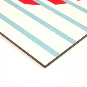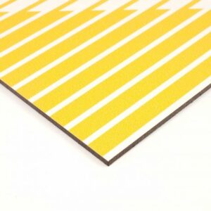 Dibond XL is geschikt voor de grote formaten. Het is een sandwichpaneel met drie verschillende lagen. Dit plaatmateriaal is licht in gewicht, maar toch zeer stevig dankzij de speciale combinatie van aluminium met een zwarte kunststof kern. Het is beschikbaar in een dikte van 3 mm.