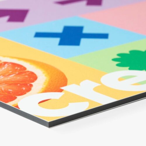 Dibond XL is geschikt voor de grote formaten. Het is een sandwichpaneel met drie verschillende lagen. Dit plaatmateriaal is licht in gewicht, maar toch zeer stevig dankzij de speciale combinatie van aluminium met een zwarte kunststof kern. Het is beschikbaar in een dikte van 3 mm.