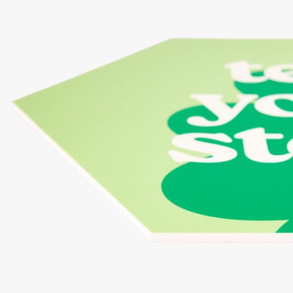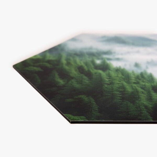 Bestel de hexagons op Forex, Dibond, Dibond Butler Finish, Plexiglas of Multiplex. Ieder materiaal heeft zijn eigen unieke uitstraling.