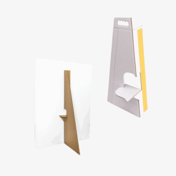 Deze kartonnen standaarden zijn ideaal om snel te wisselen van een bord op beurzen of in winkel, bijvoorbeeld bij een nieuwe actie. Je zet kleine panelen gemakkelijk op met deze standaarden die fungeren als steun.