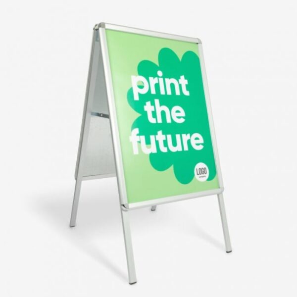 Je plaatst in deze stoepborden posters met A1 formaat. Bovendien communiceer je steeds gemakkelijk een nieuwe boodschap met aan beide zijdes dezelfde of een andere poster. Door de gebruiksvriendelijke klik-lijsten is het verwisselen heel gemakkelijk.