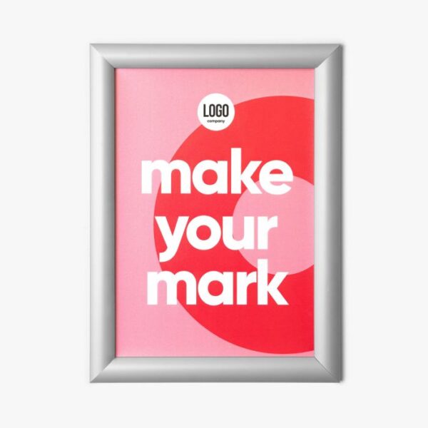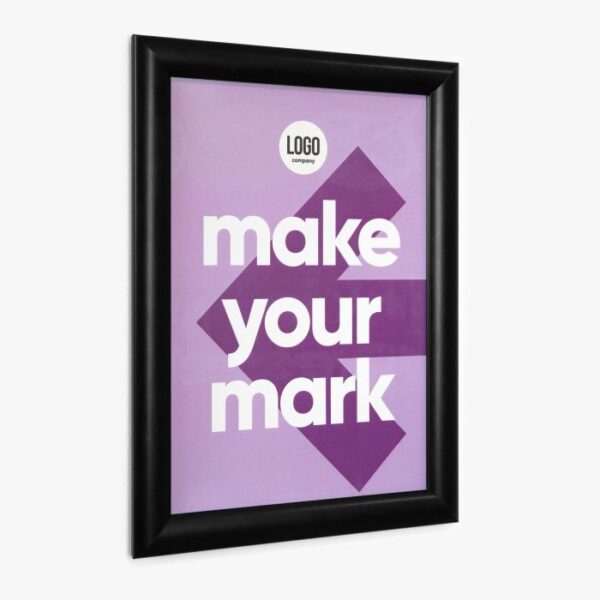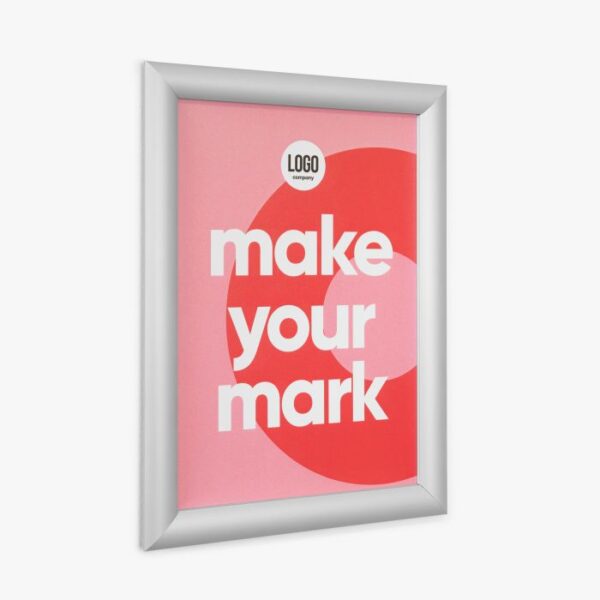 De kliklijst is hét perfecte product om de poster van jouw klant net dat beetje extra te geven. De kliklijst is beschikbaar in A4 formaat en heeft een 25 mm breed frame. Dit geeft de kliklijst een stijlvolle en professionele uitstraling. De kliklijst heeft een transparante voorzetfolie die de poster beschermt tegen vuil en vocht. Je kan de kliklijsten in zwart en zilver bestellen.