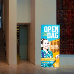 Het LED frame wordt gecombineerd met een Samba Backlit met pees. We voorzien het doek van 200% full colour print, wat betekent dat we twee lagen inkt op het doek printen. Je vouwt dit polyester doek eenvoudig op en bestelt gemakkelijk een losse print bij.