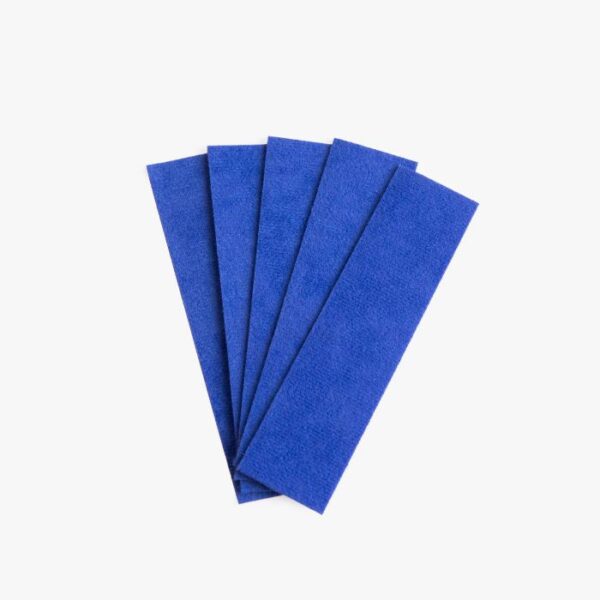 Je gebruikt Monkeystrips bij het droog plakken van folies. De blauwe vilten strips zijn uiterst dun en gemakkelijk verwisselbaar dankzij de laag tape die op de achterkant zit. Daarbij laten ze geen lijmresten op de Rakel achter. Een set bestaat uit vijf voorgesneden strips.
