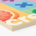 Multiplex heeft een vlakke witte toplaag en kan enkelzijdig worden geprint. De print heeft een karakteristieke en natuurlijke uitstraling, want de kleur en kenmerken van het hout blijven door de afbeelding heen zichtbaar.