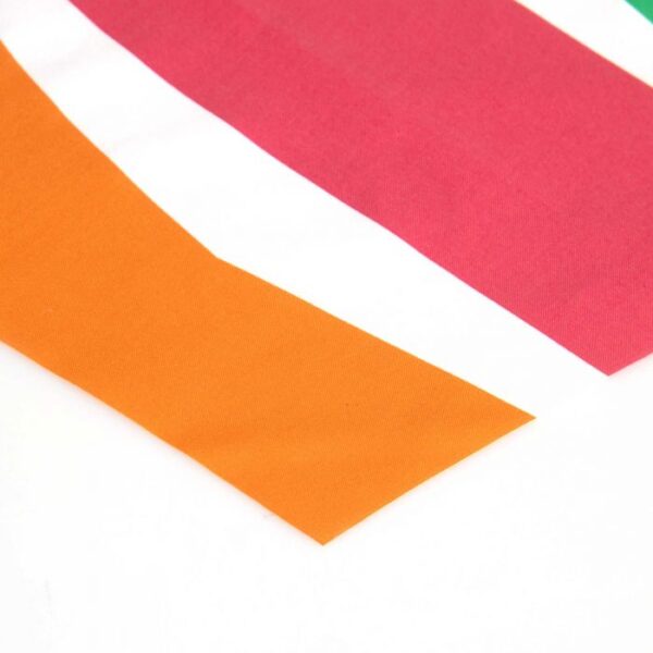 Voor dit materiaal zijn er verschillende afwerkingen mogelijk. Je kunt kiezen om het materiaal te laten snijden, zomen, of te voorzien van een tunnel. Bij afwerking per zijde wordt de eerste kleurkeuze van het garen doorgevoerd voor iedere zijde.