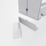 Je schuift de onopvallende Flex connector eenvoudig op de boven- en onderhoeken van de frames die je wilt verbinden. Vervolgens zet je ze neer in een willekeurige hoek. Door het identieke witte ontwerp is het scharnier bijna onzichtbaar. Kortom: ideaal voor de perfecte presentatie op beurzen en evenementen!