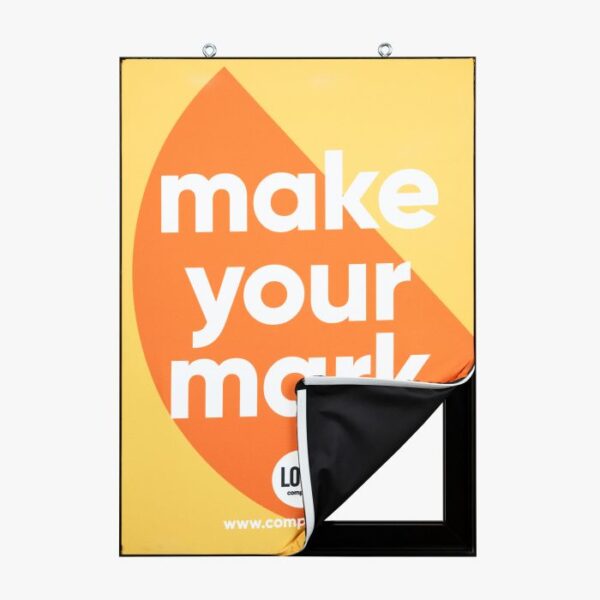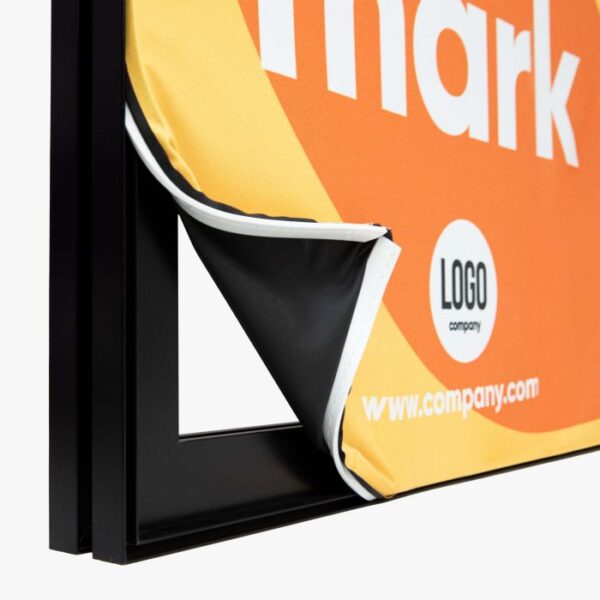 Met ons handige opspansysteem kunnen doeken snel en gemakkelijk worden verwisseld, ideaal voor seizoensgebonden, promotionele of actiematige boodschappen. Klanten hebben de keuze uit zilver, zwart of wit voor het frameprofiel, waardoor ze hun ruimte naar wens kunnen aanpassen.