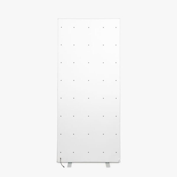 De basis van het LED frame is een robuust (zilverkleurig) aluminium frame met als formaat 85 x 200 cm of 100 x 200 cm. Door de dikte van 60 mm en twee voeten is het enkelzijdige frame zeer stevig en kan het vrij staan.