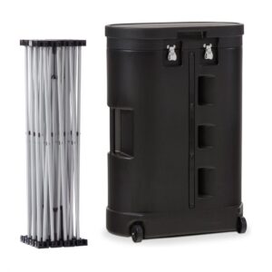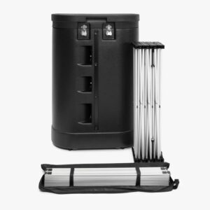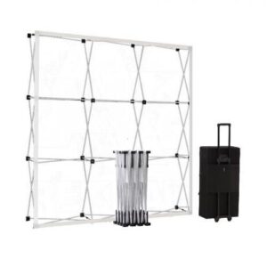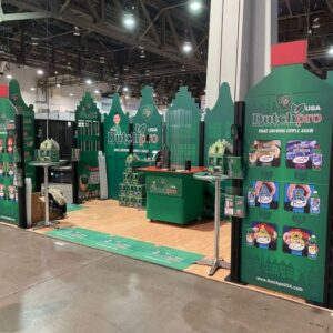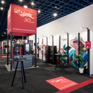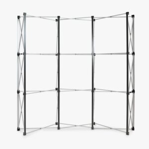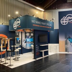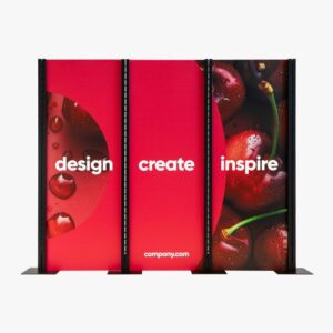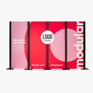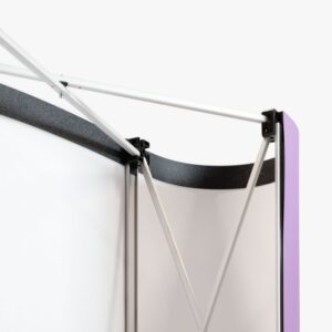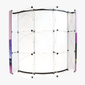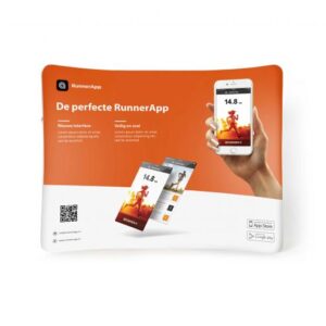 Beurswanden geven een stand een professionele uitstraling. De zipperwand is een gebogen presentatiewand met een print op Dekostof. Vanaf de achterkant is het frame niet zichtbaar en je kunt de wand dus ook dubbelzijdig bedrukken.